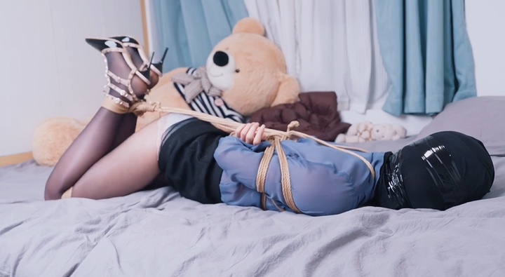 编号0514 悠米系列《OL的游戏5》超长时间放置呼吸限制游戏+丝袜头套全包+胶带二次缠绕+遥控强制羔潮,只能听到部分呻吟声 1V 1P