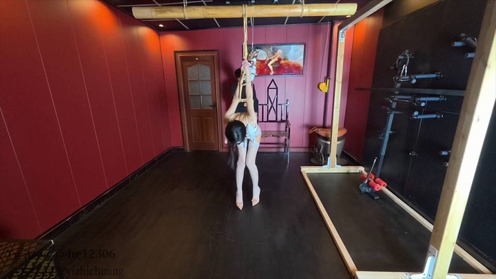 #意之窗工作室 汤圆 纯白花嫁 后手吊缚+透明亚克力箱固定+大字吊床固定+强高+失禁.mp4