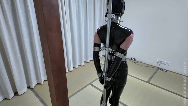 #鹿角与猫爪 乳胶旗袍奴隶,上下洞全被填满,钢管拘束架罚站,金属镣铐并肘,尼龙紧固器绑带束腿,重型金属腰带束腰,前后上轮番刺激.mp4