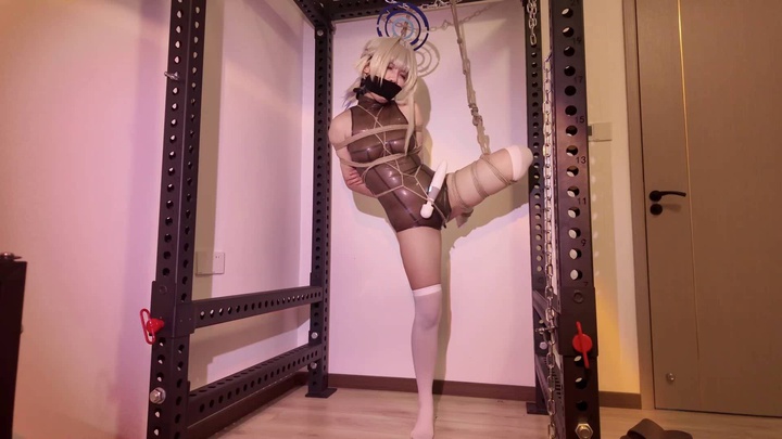 #凛凛蝶《飞鸟马时胶衣转盘放置》-海砂— 飞鸟单脚吊 马具口球流血.mp4